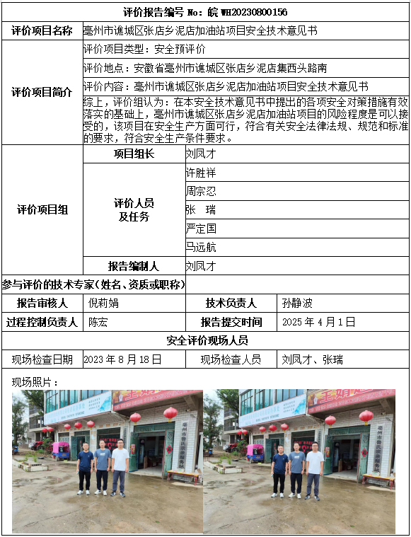 亳州市譙城區(qū)張店鄉(xiāng)泥店加油站項(xiàng)目安全技術(shù)意見書