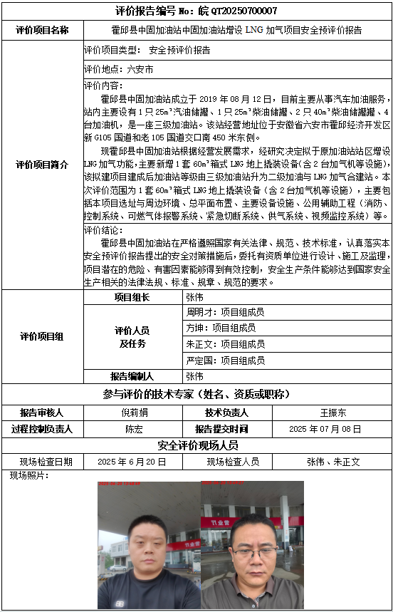 霍邱縣中固加油站中固加油站增設(shè)LNG加氣項(xiàng)目安全預(yù)評價(jià)報(bào)告