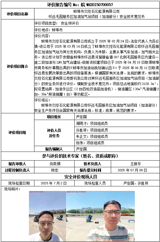 蚌埠市交控石化能源有限公司懷遠(yuǎn)毛園服務(wù)區(qū)加油加氣站項(xiàng)目(加油部分)安全技術(shù)意見(jiàn)書(shū)
