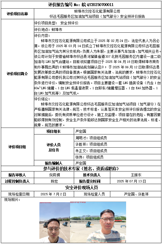 蚌埠市交控石化能源有限公司懷遠(yuǎn)毛園服務(wù)區(qū)加油加氣站項(xiàng)目(加氣部分)安全預(yù)評(píng)價(jià)報(bào)告