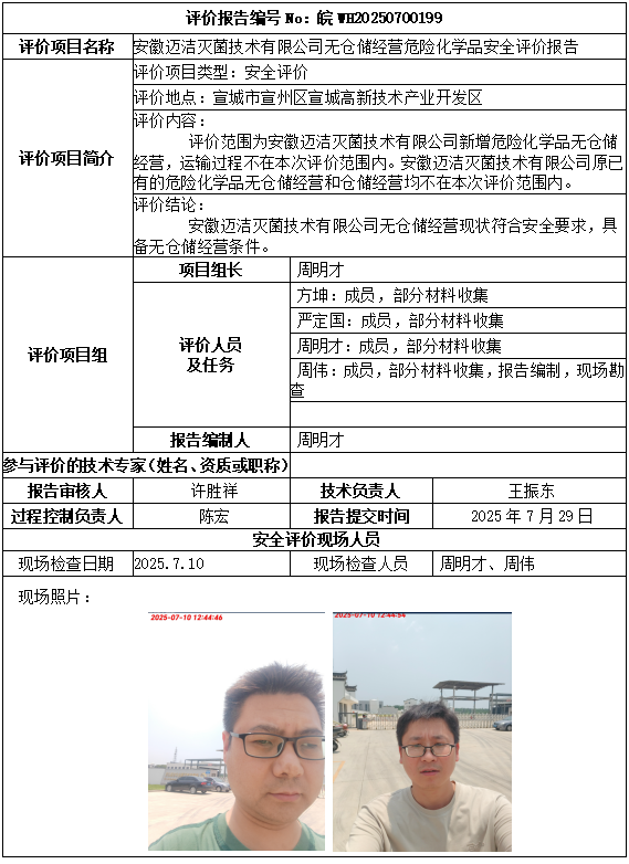 安徽邁潔滅菌技術(shù)有限公司無倉儲經(jīng)營危險(xiǎn)化學(xué)品安全評價(jià)報(bào)告