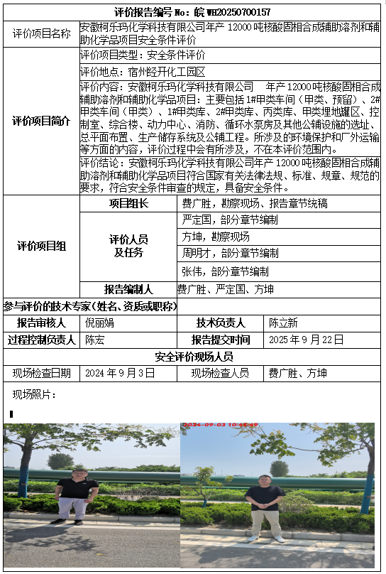 安徽柯樂瑪化學(xué)科技有限公司年產(chǎn)12000噸核酸固相合成輔助溶劑和輔助化學(xué)品項目安全條件評價