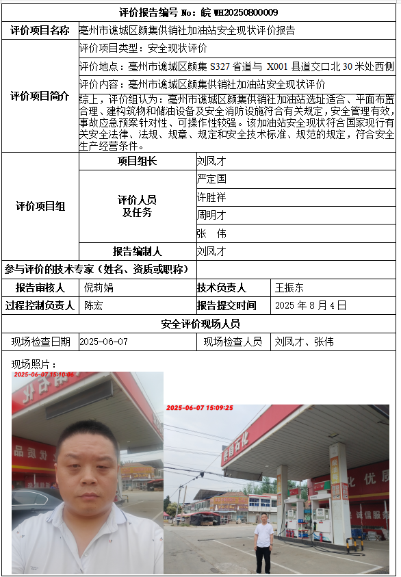 亳州市譙城區(qū)顏集供銷(xiāo)社加油站安全現(xiàn)狀評(píng)價(jià)報(bào)告