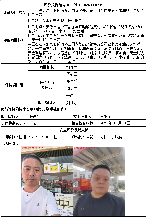 中國石油天然氣股份有限公司安徽亳州銷售分公司蒙宿路加油站安全現(xiàn)狀評價報告