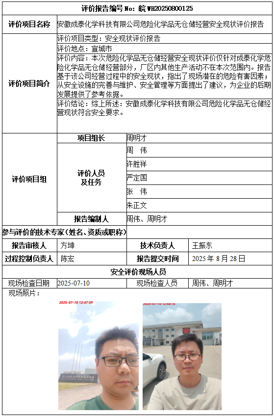 安徽成泰化學(xué)科技有限公司危險(xiǎn)化學(xué)品無(wú)倉(cāng)儲(chǔ)經(jīng)營(yíng)安全現(xiàn)狀評(píng)價(jià)報(bào)告