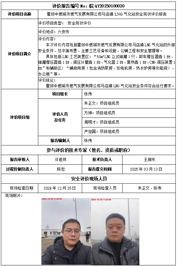 邱中燃城市燃氣發(fā)展有限公司馬店鎮(zhèn)LNG氣化站安全現狀評價報告