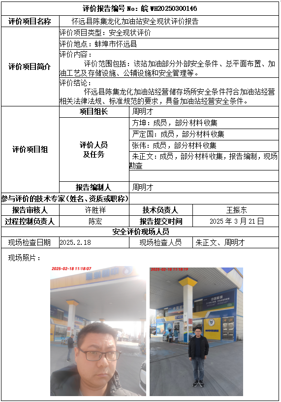 懷遠縣陳集龍化加油站安全現(xiàn)狀評價報告