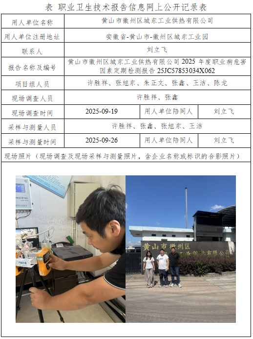 黃山市徽州區(qū)城東工業(yè)供熱有限公司2025年度職業(yè)病危害因素定期檢測報告