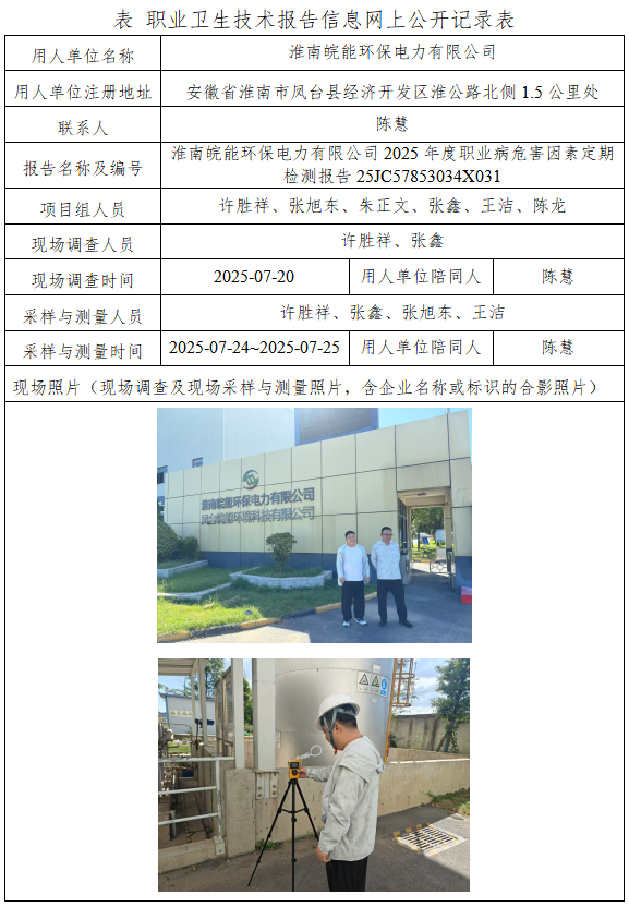 淮南皖能環(huán)保電力有限公司2025年度職業(yè)病危害因素定期檢測報告