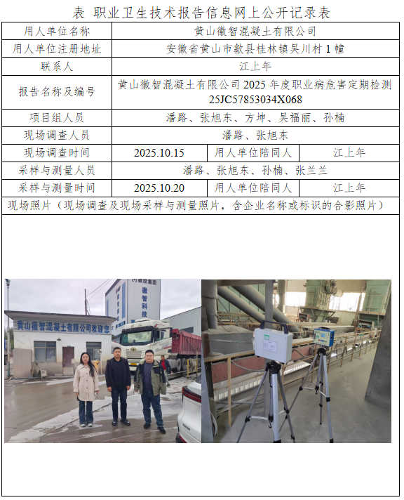 黃山徽智混凝土有限公司2025年度職業(yè)病危害定期檢測報告