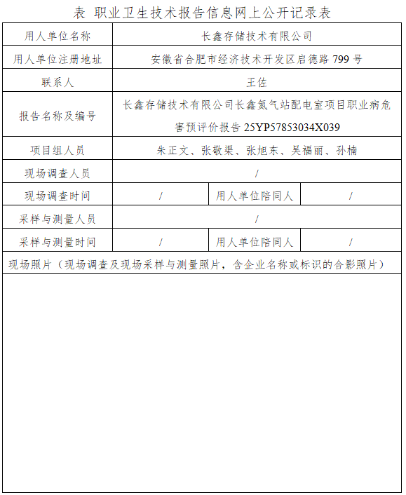 長鑫存儲技術(shù)有限公司長鑫氮氣站配電室項目職業(yè)病危害預(yù)評價報告